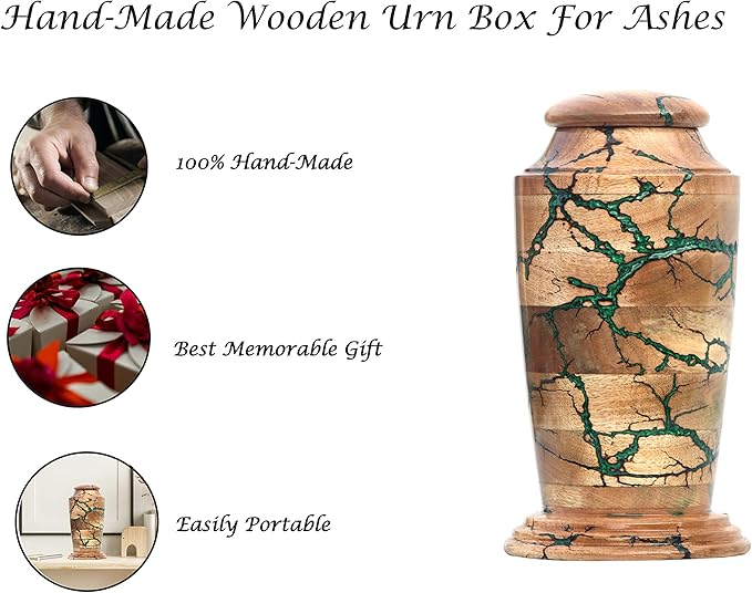 Lichtenberg Figure Urn Resin and Wood Cremation Urn - Personalized Wooden Cremation urn urns for Ashes - Funeral Box Ashes (11" x 6" x 5")
