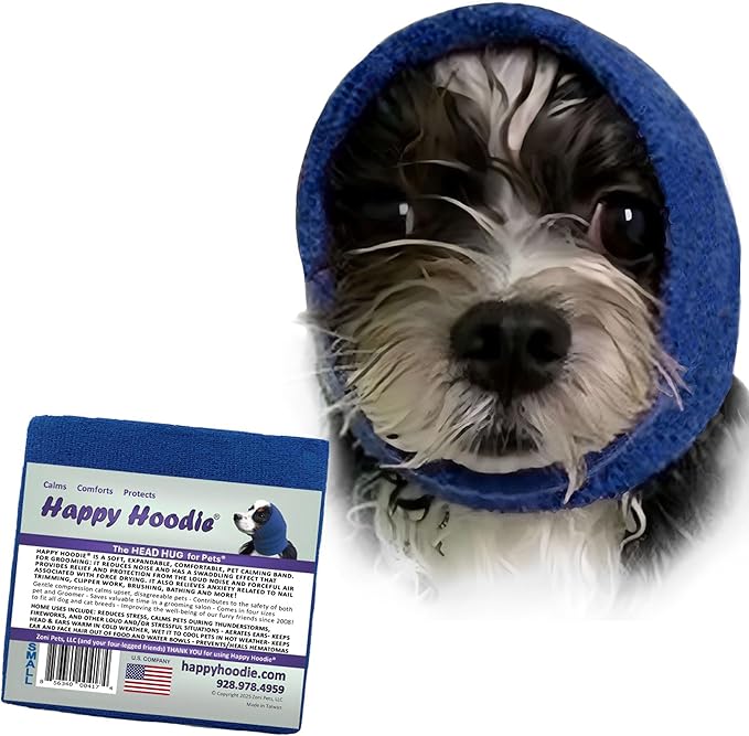 Happy Hoodie The Original Dog & Cat Calming Band - American Brand - Anxiety Relief/Noise Protection-Grooming-Thunder-Fireworks (Small, Blue) - Since 2008