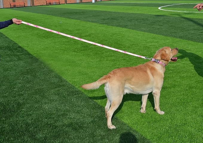 Dog Collar and Leash Set with Bohemia Floral Tribal Geometric Patterns - Soft Ethnic Style Collar Adjustable for Small Medium Large Dogs(Pink Rose Set,S)