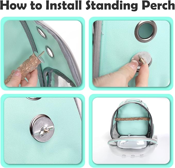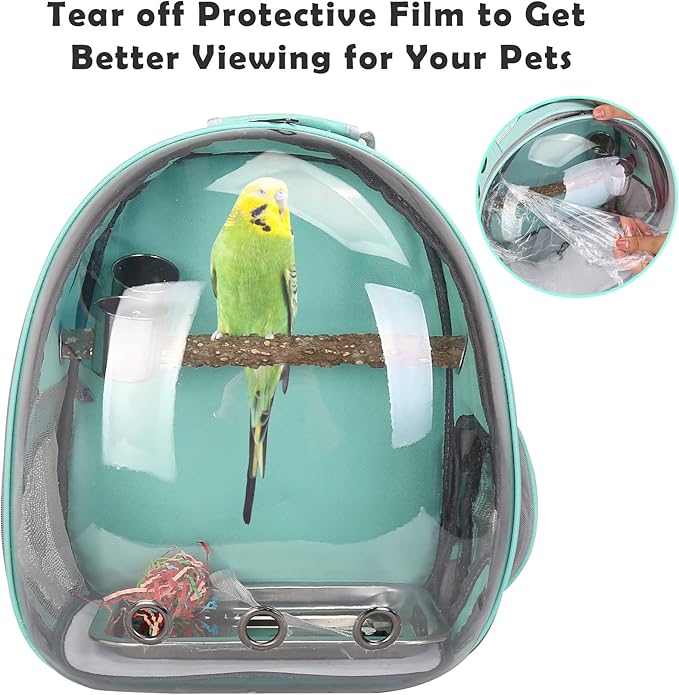 Bird Backpack Carrier with Perch, Portable Bird Travel Cage Bag, Clear Parrot Carrier Cockatiel Cage with Toy Stainless Steel Food Bowl Tray for Conures Parakeet Budgie Canary Lovebirds Small Animals