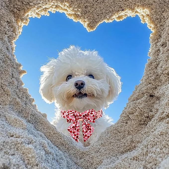 Maca Bates Valentine's Day Dog Collar with Sailor Bow for Extra Large Girl Boy Dogs,Red Love Hearts Pattern,Adjustable Durable Soft Valentine Gift for Female Male Puppy