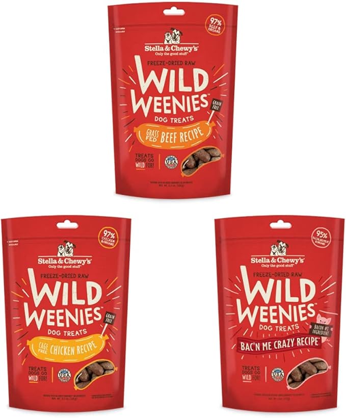 Stella & Chewy's Wild Weenies Dog Treats Large Bag 3 Pack Variety Bundle (Beef, Chicken & Bacon)