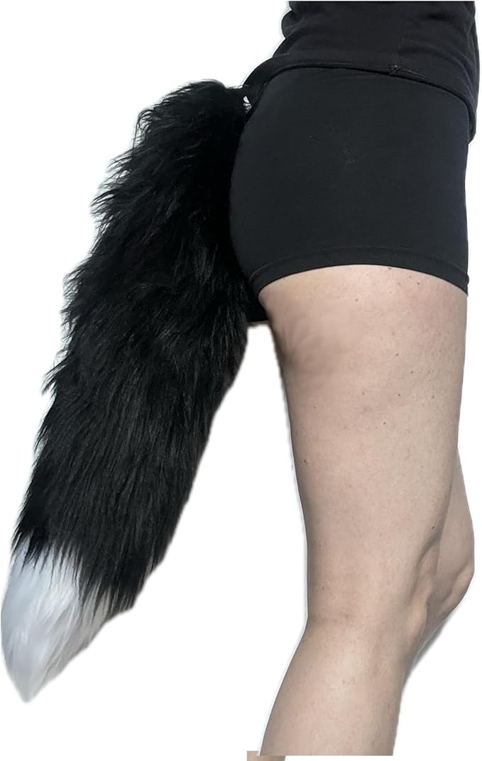 Bianna Creations Faux Fur Animal Tail, Handmade, Cosplay, Anime Lover, Costume Dress Up Pet Play Furry Super Soft Accessory (20", Fox Black)
