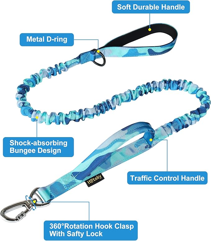 Hotsky Tactical Dog Collar and Leash Set, Heavy Duty Military Airtag Dog Collar with Handle and Metal Buckle for Training and Walking, with Airtag Holder and Two Patches (Blue Camo, XL)