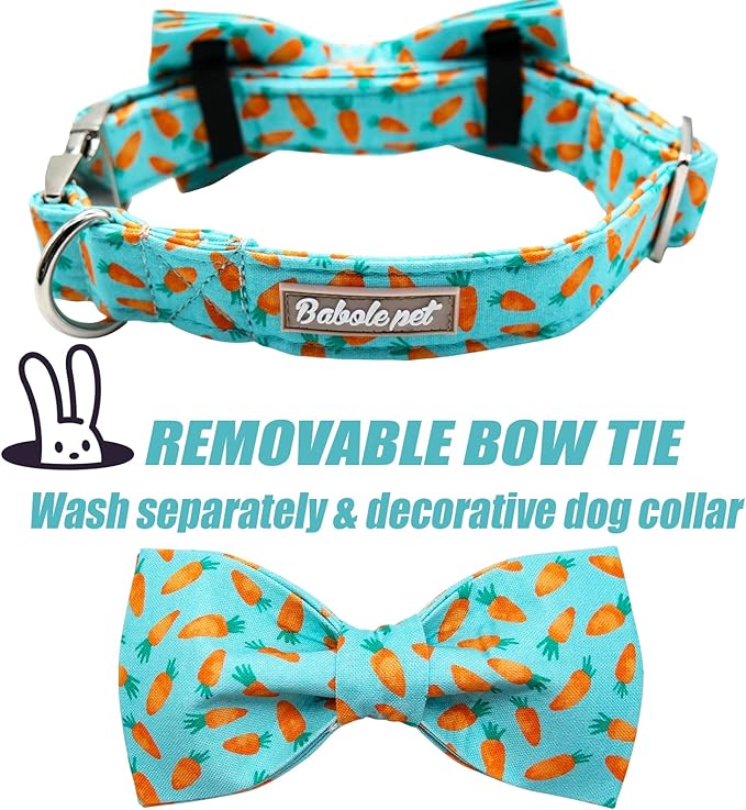 Easter Dog Collar with Bow Tie - Adjustable Easter Carrot Dog Collar Designer Bowtie Collar Metal Buckle Puppy Collars for Small Medium Large Dogs XL
