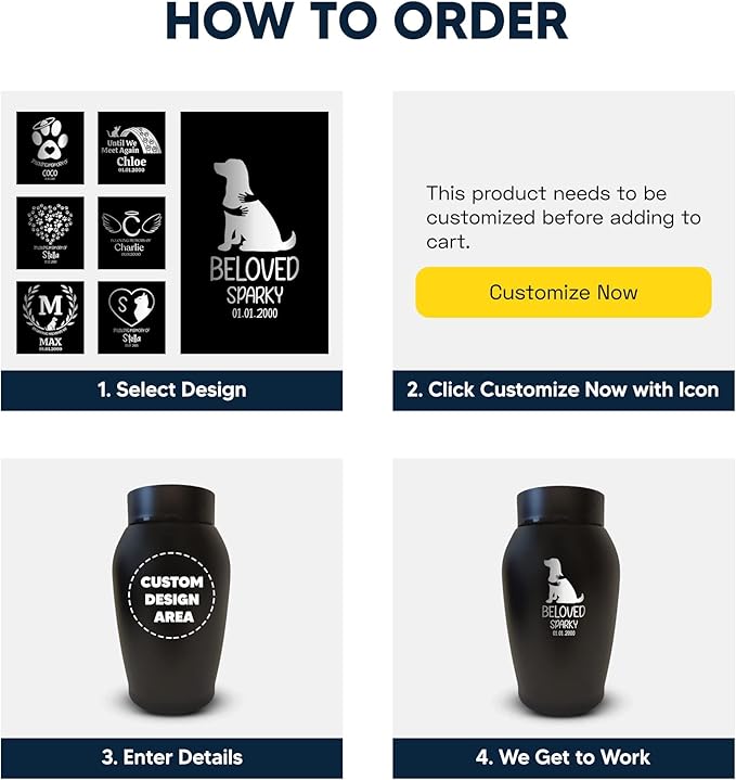 - PERSONALIZED: Engrave your dog's name, date of birth, and passing to create a personalized tribute to your furry friend. Choose from the front, back or even the cap to personalize this pet urns for dogs ashes.