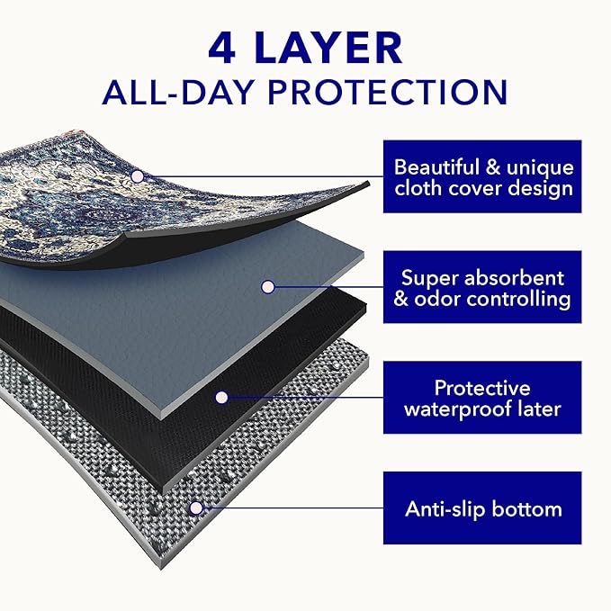 • Maintains Absorption After 500+ Washes - Ultra-absorbent and leak-proof washable dog pee pads. Our multi-layered reusable puppy pads feature a waterproof TPU coating that effectively absorbs and retains liquid, preventing leaks and odors. Designed to withstand repeated washing & urine soaking, these durable whelping pads are perfect for housebreaking, incontinence, or post-surgery care. The non-slip backing keeps the pad securely in place, making it ideal for use on hardwood floors or in crates.