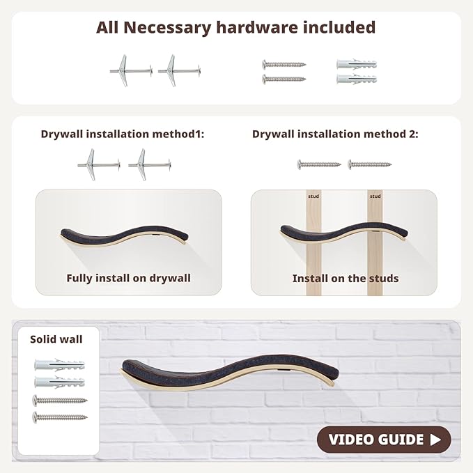 Cat Shelf with Comfortable Cushion - Wave Modern Cat Bed - Minimalistic Floating Cats Wall Perch - Wooden Wall Mounted Cats Furniture for Sleeping, Playing, Climbing, and Lounging