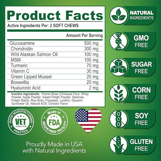 Glucosamine for Dogs - Hip and Joint Supplement for Dogs - Glucosamine Chondroitin - Joint Pain Relief Pills - MSM - Advanced Health Support Supplement - 120 Mobility Chews - Made in USA
