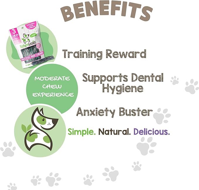 Nature Gnaws Braided Beef Chews for Dogs 5-6" (3 Count) - Long Lasting for Small and Medium Dogs - Natural Beef Gullet Jerky Dog Chew Treats