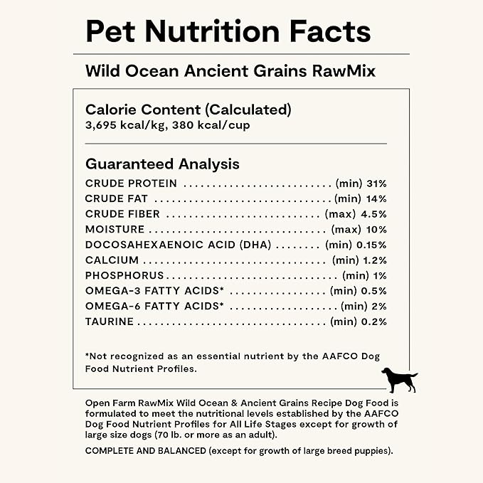 Open Farm, RawMix Dry Dog Food with Ancient Grains, Protein-Packed Kibble Coated in Bone Broth with Freeze Dried Raw Chunks, Salmon Whitefish & Rockfish, Wild Ocean Recipe, 20lb Bag