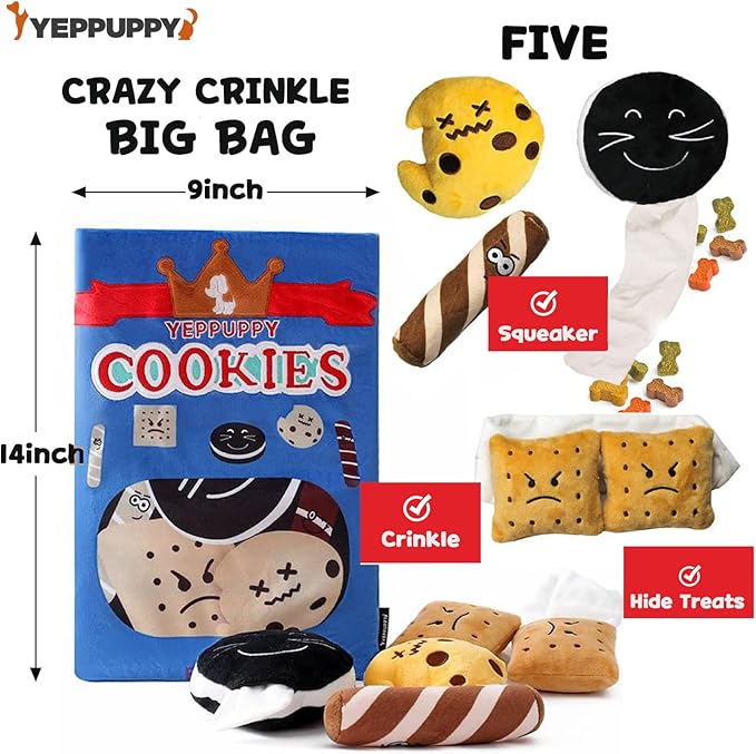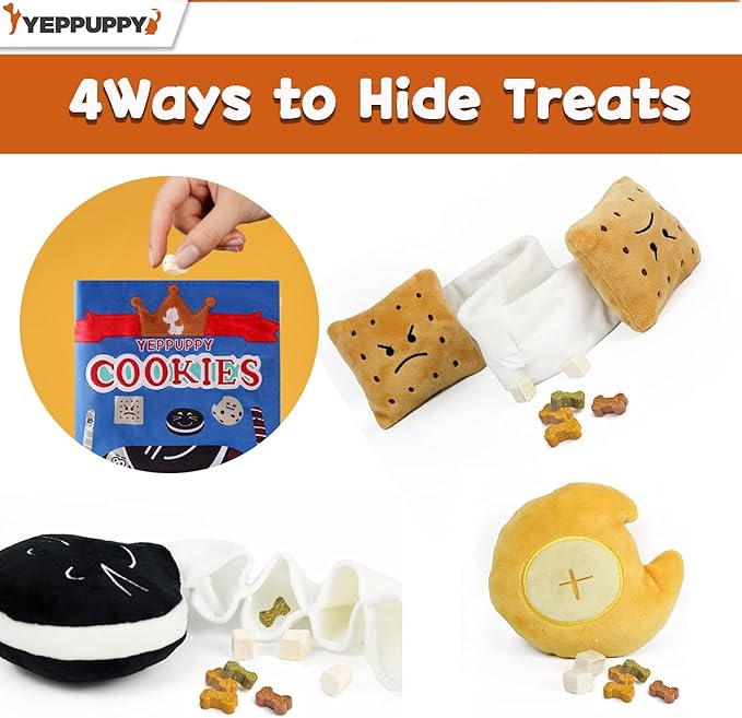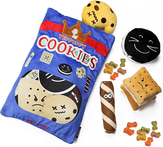 YEPPUPPY Sniffing Play for Mental Stimulation& Hide & Seek Plush Treat Dispenser – Boredom-Busting Interactive Burrow Dog Toy – Snuffle Puzzle Enrichment Gamewith Crinkle Bag and Cookies Design