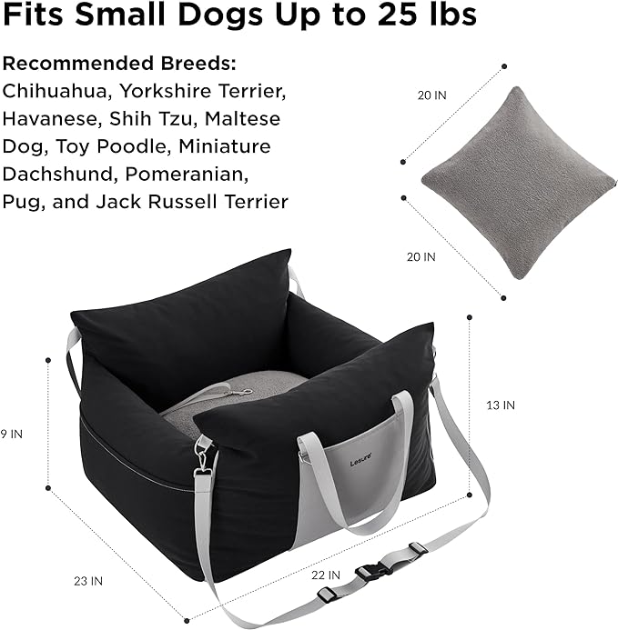 Lesure Small Dog Car Seat for Small Dogs - Waterproof Dog Booster Car Seat with Storage Pockets, Clip-On Safety Leash and Thickened Memory Foam Filling, Pet Carseat Puppy Travel Carrier Bed, Black