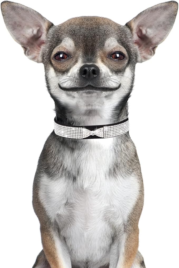 Dog Collar for Small Dogs, Adjustable Leather Suede Bling Dog Collars,Pink Dog Collar Cat Collar, Rhinestone Dog Collar (M, black4)