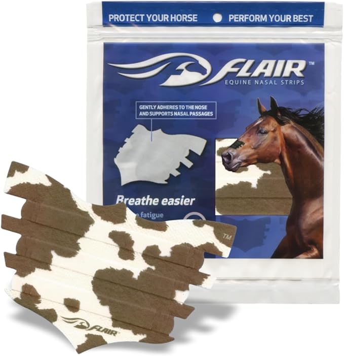 Flair Equine Nasal Strips for Horses (Cow, 6 Pack), Adhesive Equine Nasal Strips & Support, Breathing Improvement for Competition and Training Horses, Equine Health Supplies, Breathing Aid