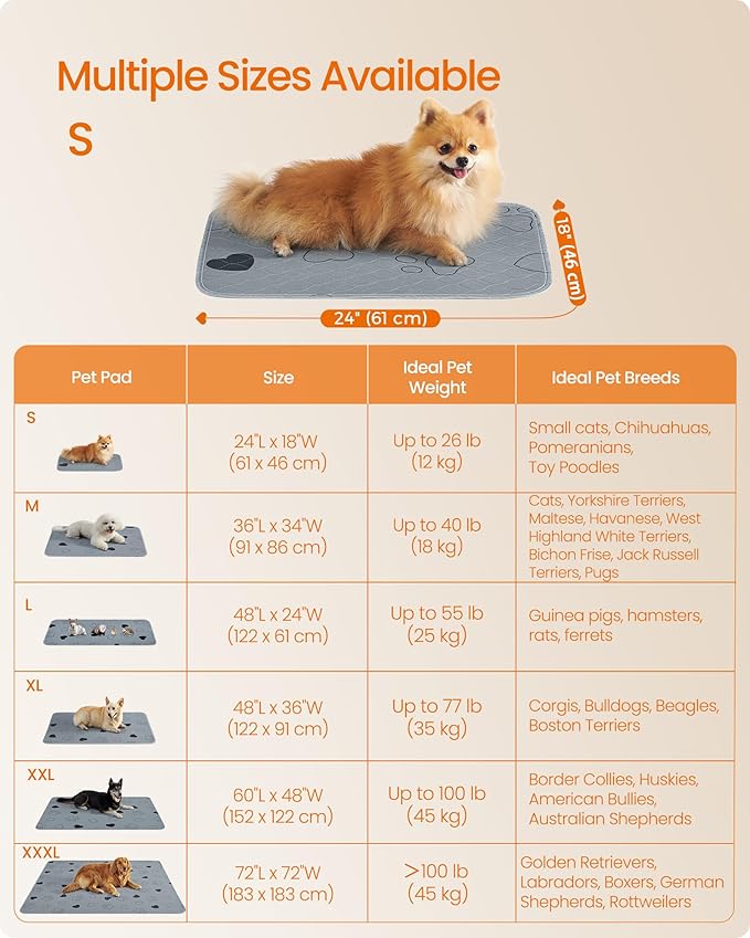Feandrea Washable Dog Pee Pad, 2 Pack, Reusable, 24 x 18 Inches, S, Waterproof Pet Training, Leakproof, Non-Slip, Super Absorbent, Gray UPTD018G01