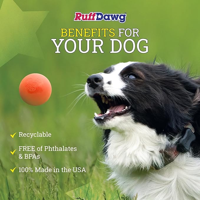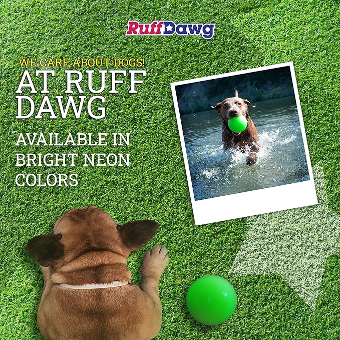 Ruff Dawg Ball XXL – Durable Rubber Dog Toy – Made in USA – Bouncy Ball in Bright Neon Colors – Great for Fetch, Teething & Outdoor Play, Floats in Water