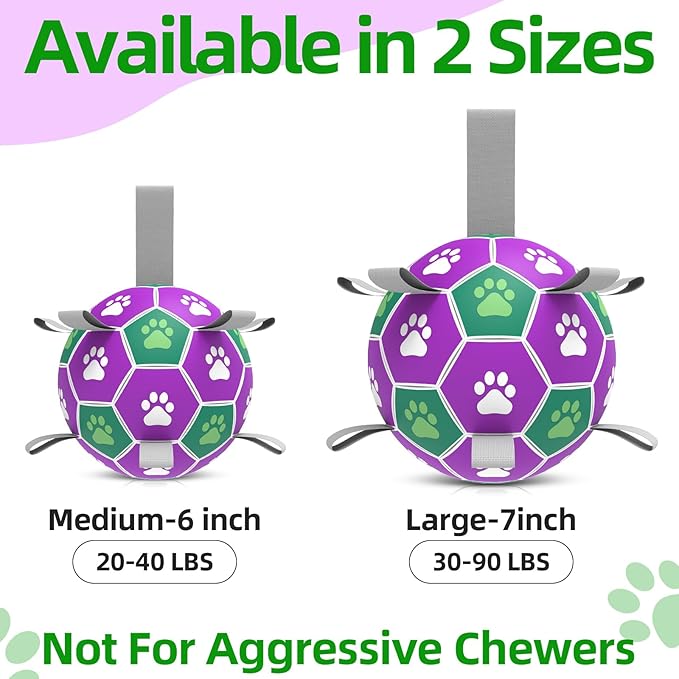 Diman Dog Balls with Nylon Straps, Puppy Soccer Ball for Dogs, Outdoor Dog Toys, Durable Fetch Pet Toy for Training, Birthady Gift for Large Pets (7 Inch)