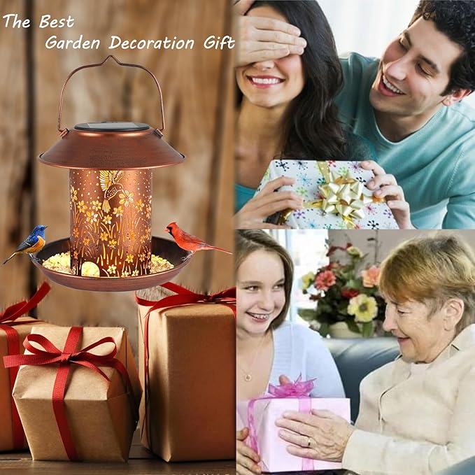 Bird Feeders for Outdoors Hummingbird Solar Lanterns Outdoor Waterproof Hanging Garden Decor Birthdays for Women Mom Metal Solar Decoration Outside for Yard, Patio,