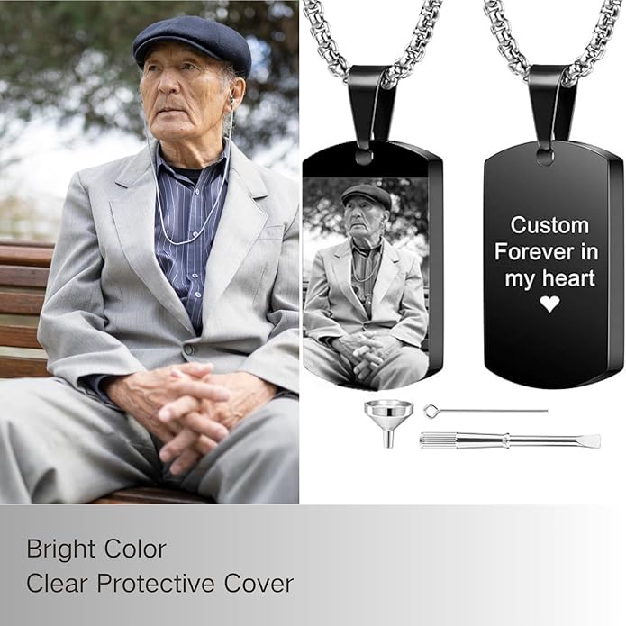 • Memorial Dog Tag Necklace,is a beautiful, touchable reminder of your loved one.Everything Will Be Better, You Will Never Lose The Memory And Keep Your Loved One Close To Your Heart At All Times, He Or She Will Always Be With You.The Neutral Design Of This Pendant Makes It Ideal For Both Men And Women.