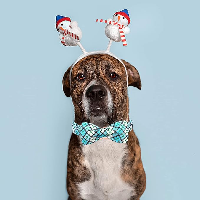 Elegant Little Tail Blue Plaid Dog Collar with Bow - Soft, Adjustable for Small to Large Dogs