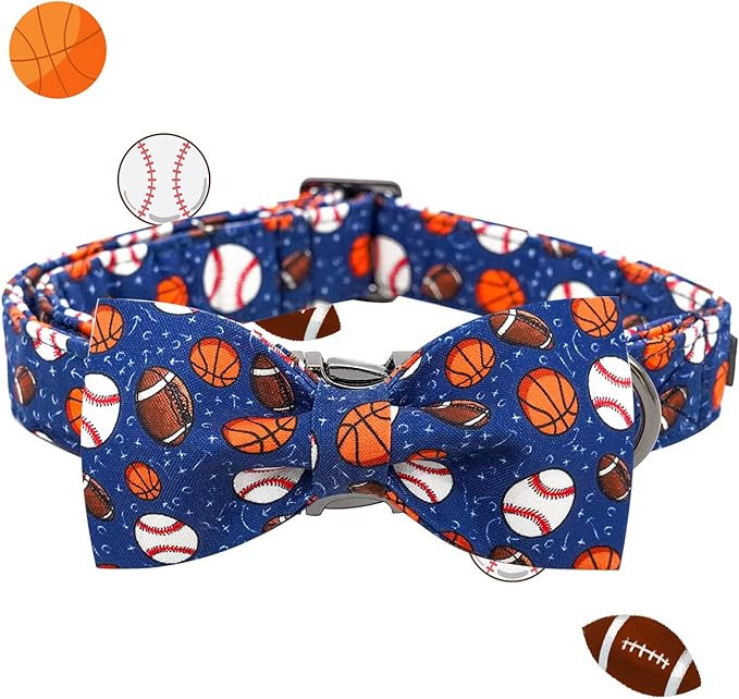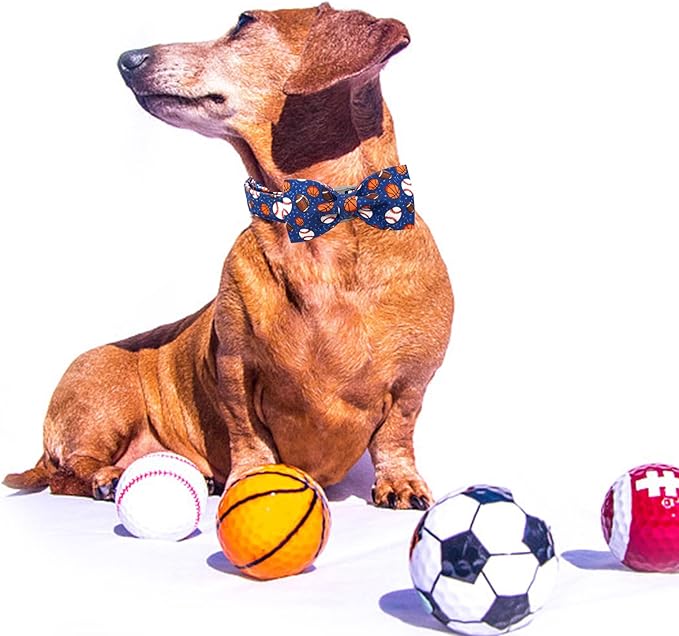 Elegant Little Tail Balls Print Dog Collar with Bow - Soft, Adjustable for Small to Large Dogs