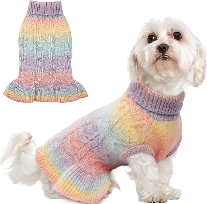 About This Soft & Warm Rainbow Dog Sweater: The small dog sweater is made of high density acrylic yarn, soft... Read more