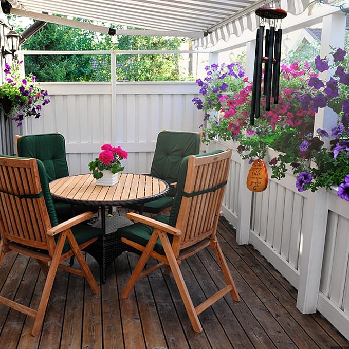 - 【25.5 Inch Sympathy Wind Chimes】 Hang the wind chimes for outside in a tree, patio or memorial garden as unique outdoor decor. Overall hanging height from hook top to wind sail bottom is 25.5" It is perfectly medium-sized, not too small like 19"or too large as 38".