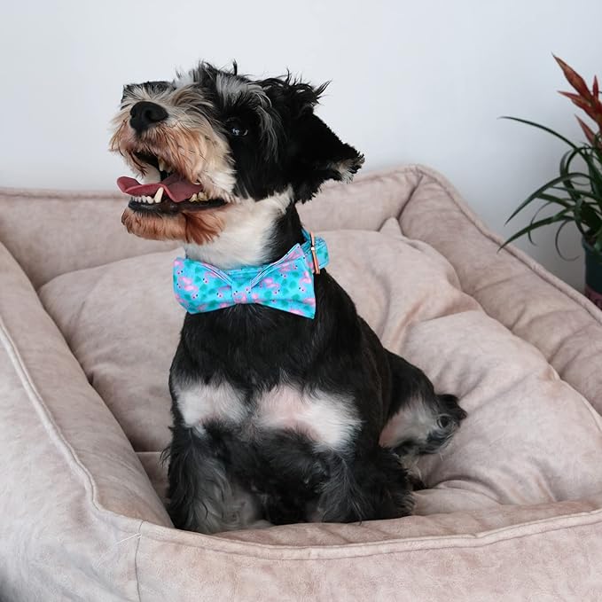 ARING PET Flamingo Dog Collar-Cotton Dog Collar with Bow, Adjustable Summer Bowtie Dog Collars Pet Collars with Metal Buckle