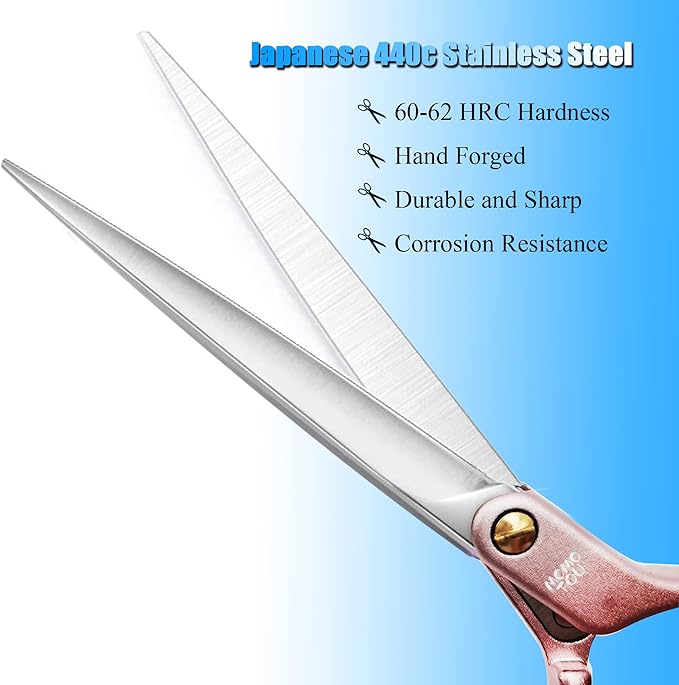 - Material:Our scissors blades use real high-quality Japanese 440C stainless steel, and because of this stainless steel, our scissors are very durable and sharp. The handles of the scissors are made of aluminum, which makes the scissors very light in weight. You will find that the feel of our scissors will be better than most ordinary scissors on the market, even other 440c scissors. The user's hands will not feel tired after using the scissors for a long time because of the light weight.