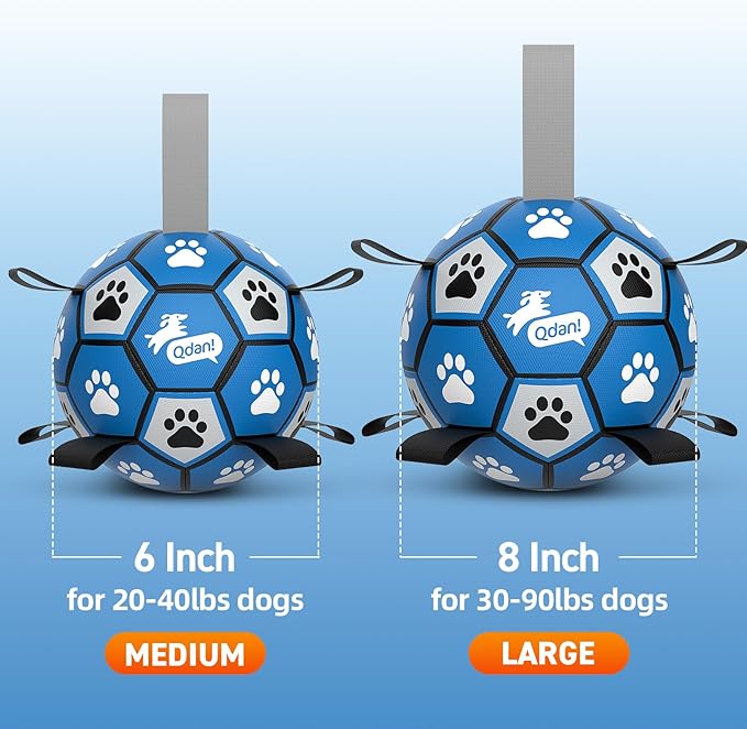 QDAN Dog Ropes Toys, Soccer Ball with Straps, Puppy Birthday Gifts, Durable Balls for Medium Large Dogs-Blue&Grey(8 Inch)