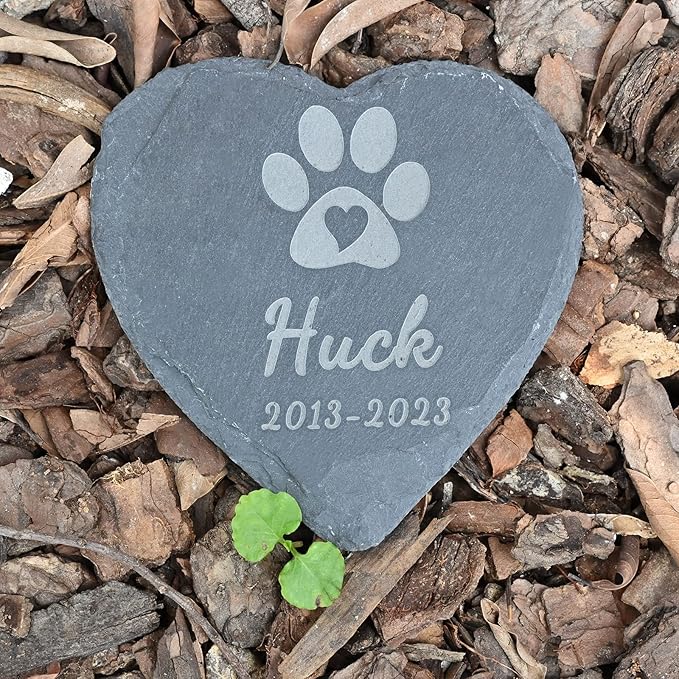 - 🐈Pet Memorial Keepsake: This personalized pet memorial stone expresses eternal love for pets from the perspective of commemorating them. The heart-shaped frame, pet footprints, name and date make this small stone help remind you of good times and preserve the memories of your pet's love.