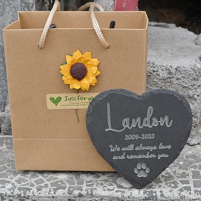 - Premium and Durable Material: The pet memorial stone is made from hard slate stone and the engraving. Provide durability against heat and humidity weather conditions and last for years.