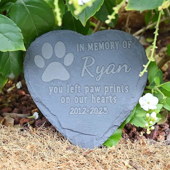 - Premium and Durable Material: The pet memorial stone is made from hard slate stone and the engraving. Provide durability against heat and humidity weather conditions and last for years.