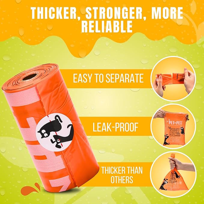 - Thicker and More Reliable: Our doggie bags for poop are stronger and thicker, holding any mess without tearing or leaking, so you can feel confident and worry-free!