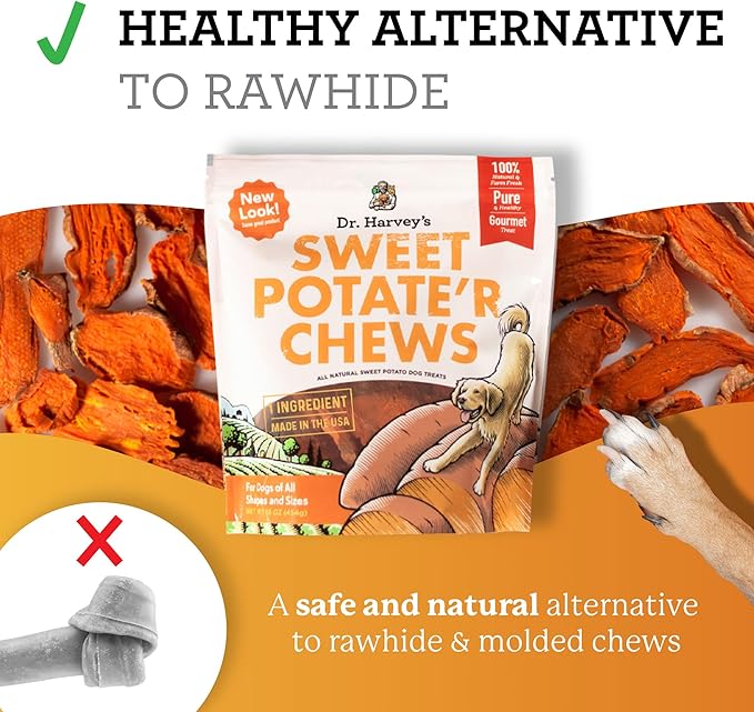 Dr. Harvey's Sweet Potato Chews for Dogs, Dog Treats for Small, Medium, Large Dogs, Natural Dog Snacks for Training, Healthy Teeth, Preventing Bad Breath, and Aggressive Chewers, USA Grown (3 Pack)