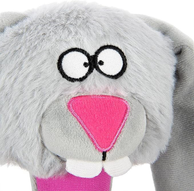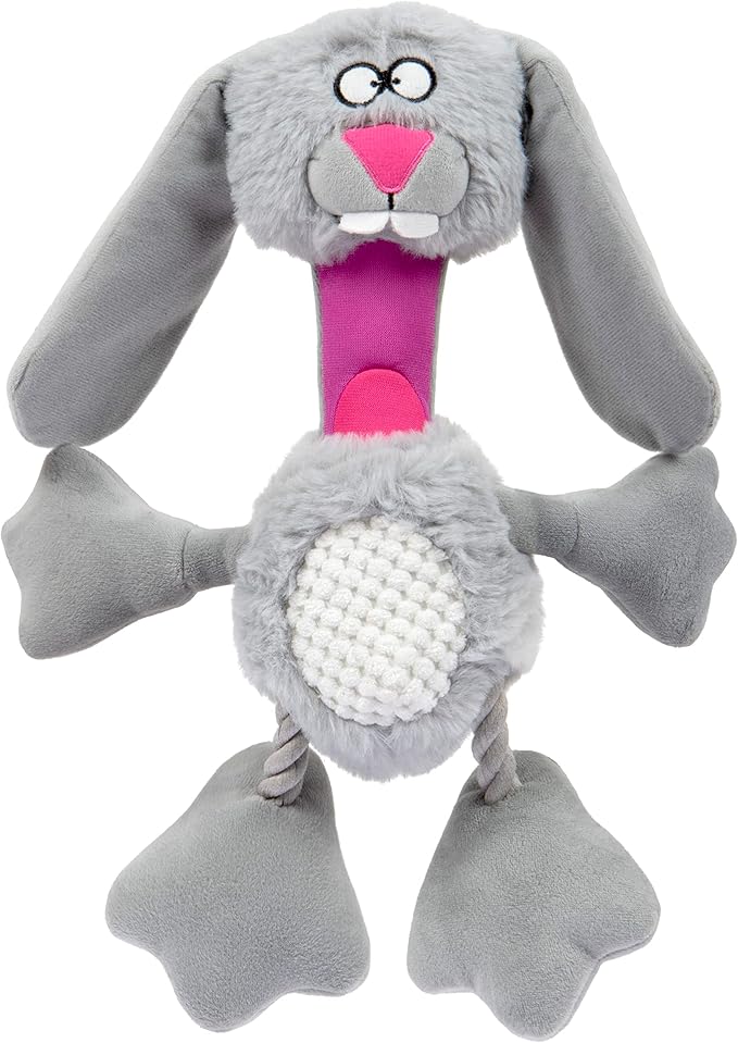 goDog Multi Tugs Rabbit Squeaky Plush & Rope Dog Toy, Chew Guard Technology - Gray, Small