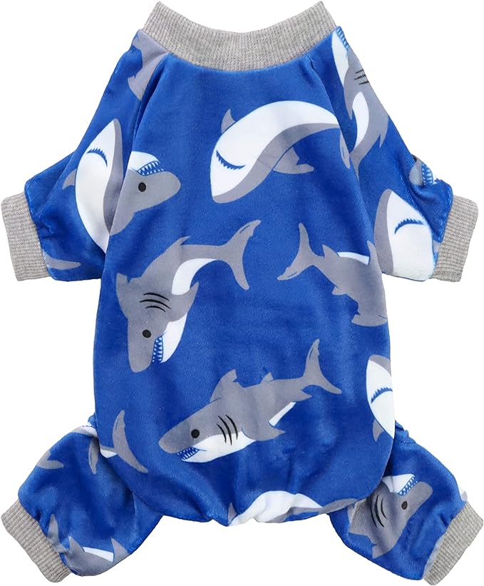 Fitwarm Shark Dog Pajamas, Dog Clothes for Small Dogs Girl Boy, Pet Onesie with Feet, Cat Outfit, Lightweight Velvet, Royal Blue, Small