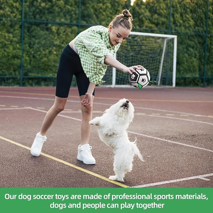 QDAN Dog Toys Soccer Ball with Straps, Interactive Toys for Tug of War, Puppy Birthday Gifts, Dog Water Toy, Durable Balls World Cup for Small Dogs(5 Inch)