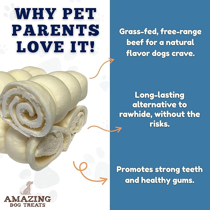 Amazing Dog Treats - Beef Cheek Rolls (6 Inch Regular - 8 Pcs) - No Hide - Safe Rawhide Alternative Dog Chew - Great for Power Chewers - Long Lasting Dog Chew - No Splinters - Retriever Rolls For Dogs