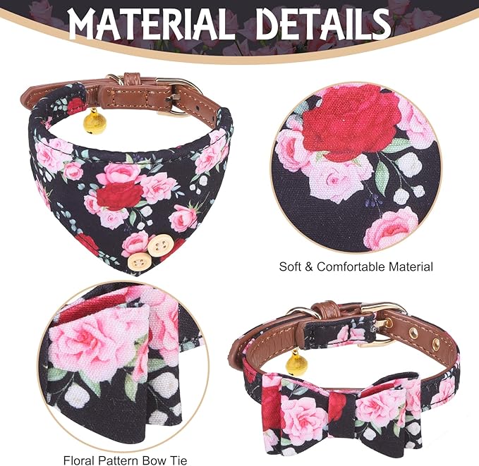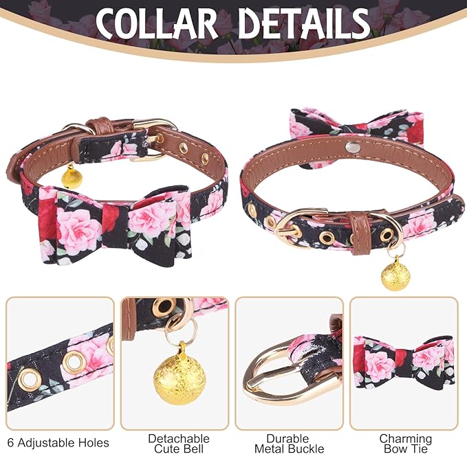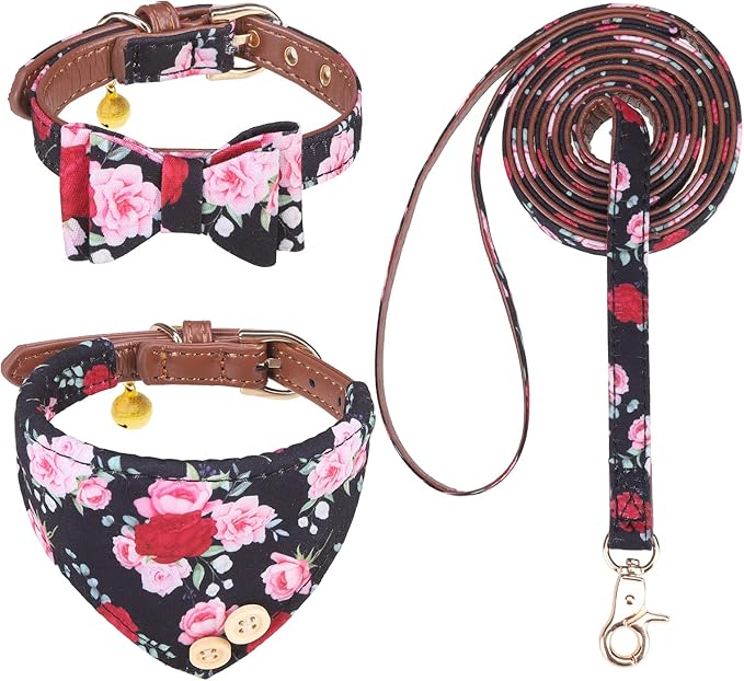 EXPAWLORER Classic Plaid Dog Collar and Leash Set - Bow Tie and Bandana Collar with Bell, Tangle Free Leash, Adjustable for Small to Large Dogs and Cats, Perfect