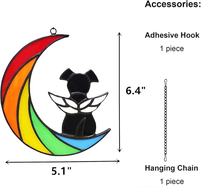 Stained Glass Rainbow Bridge Dog Memorial Gifts for Loss of Dog Sympathy Remembrance Suncatcher, Angel Wings Pet Loss Bereavement Gifts in Memory of Pet Passing Away Window Hanging.