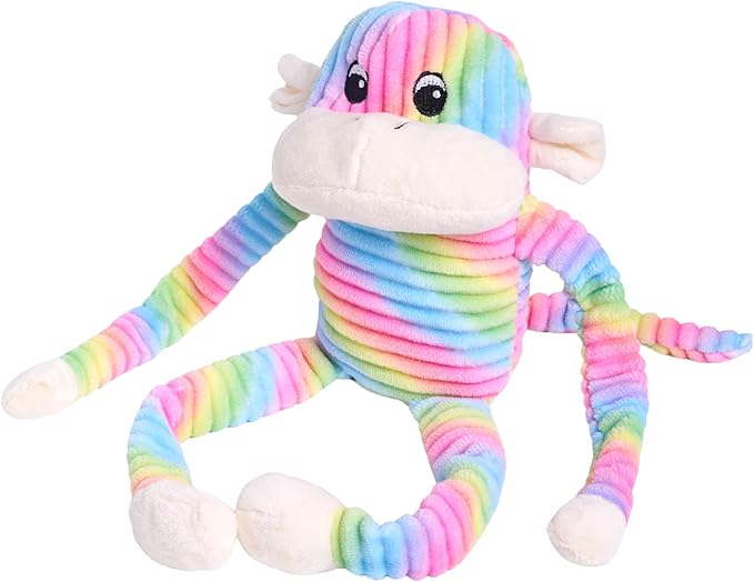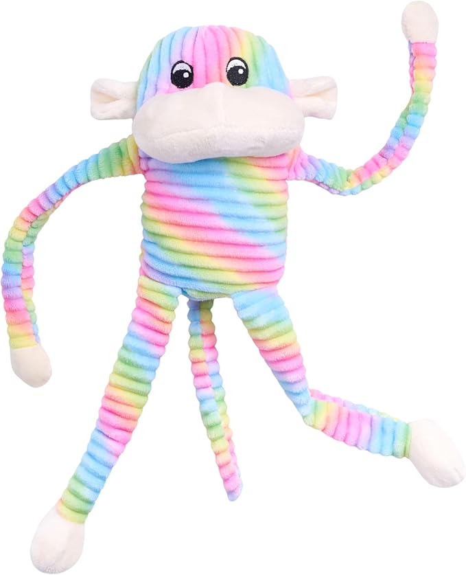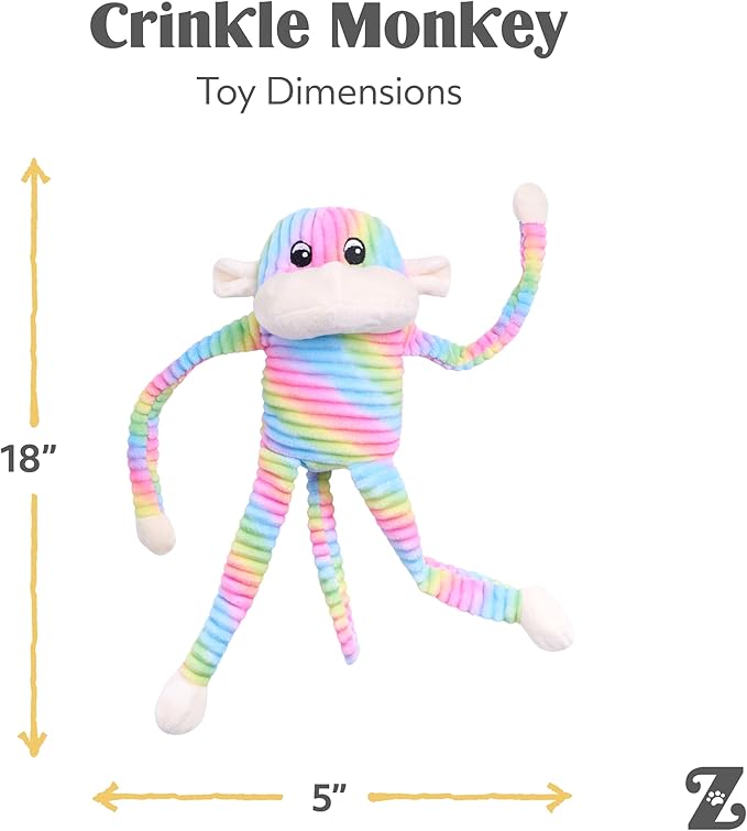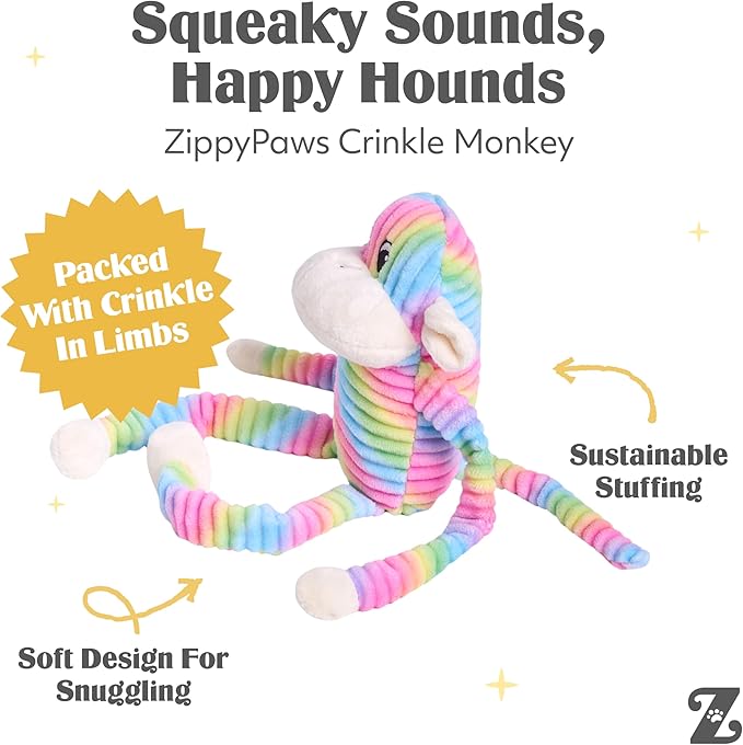 ZippyPaws - Spencer The Crinkle Monkey Dog Toy, Squeaker and Crinkle Plush Toy - Rainbow, Large