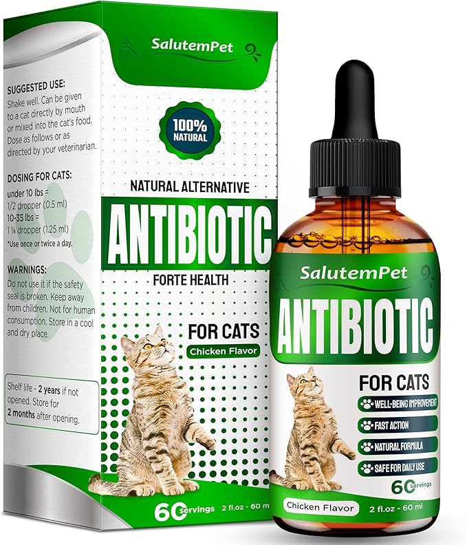 Cat Antibiotic for Infections, UTIs, Respiratory Moments, Cold, & Allergies | Antibiotics for Cats of All Ages & Breeds | Liquid Form | Natural Supplement with Chicken Flavor | 2 Oz