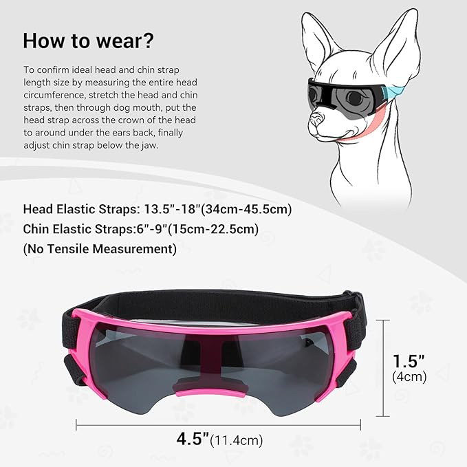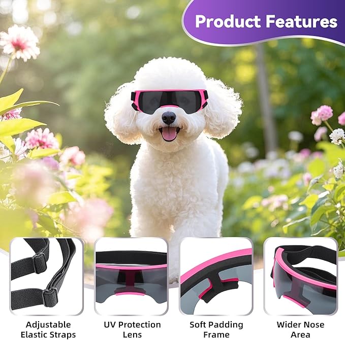 LESYPET Dog Goggles for Small Medium Dogs, UV Protection Dog Sunglasses with Foam Padded, Windproof Eye Protection Puppy Sunglasses for Riding Driving, Adjustable, Pink