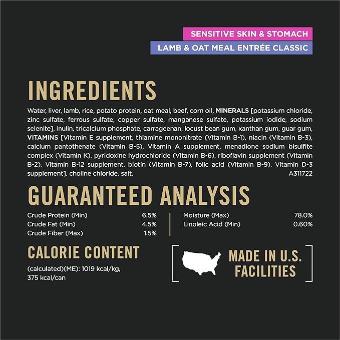 Purina Pro Plan Sensitive Skin and Stomach Wet Dog Food, Salmon and Rice and Lamb and Oat Meal Variety Pack - (Pack of 12) 13 oz. Cans