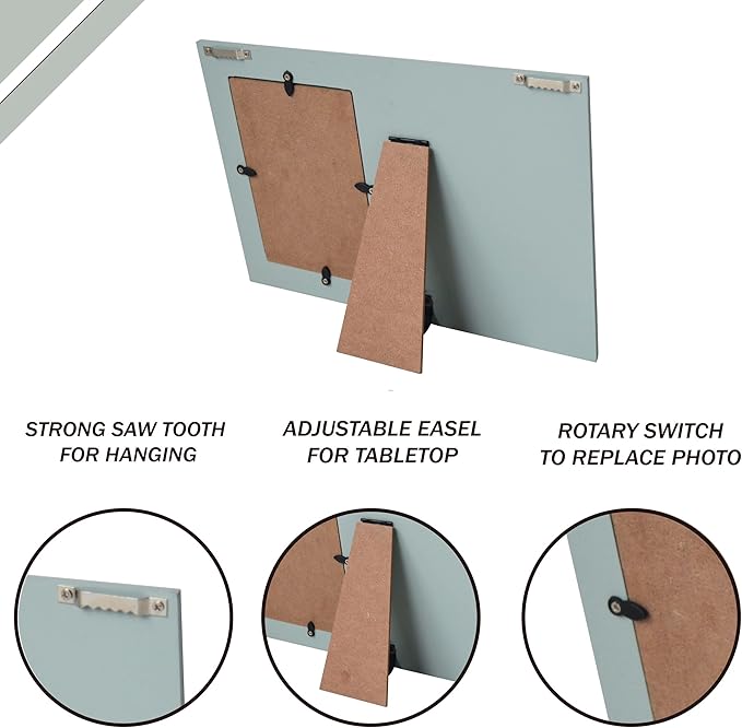 - STURDY CONSTRUCTION: Overall measures 11" x 7.7" Holds 4x6 inches photo that easy to change ,Complete with thick glass front.Easel back for tabletop display ,Saw tooth easy for wall mounting ,jute rope included.