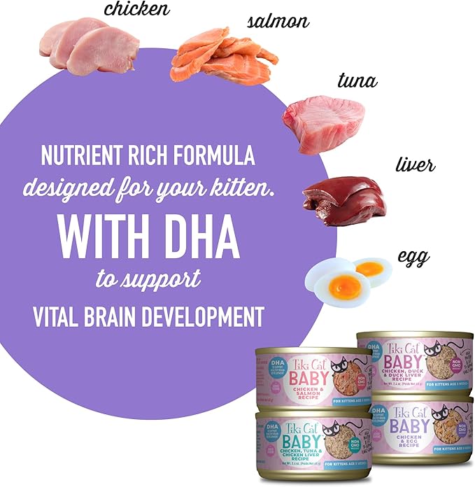 Tiki Cat Baby, Shreds Variety Pack, High-Protein and Flavorful, Wet Cat Food for Kittens 8 Weeks Plus, 2.4 oz. Cans (Pack of 12)