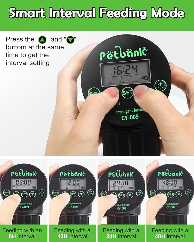 About This Smart Interval Mode: Easily set the feeding intervals by pressing the "▲" or "▼" button. Choose from 8... Read more