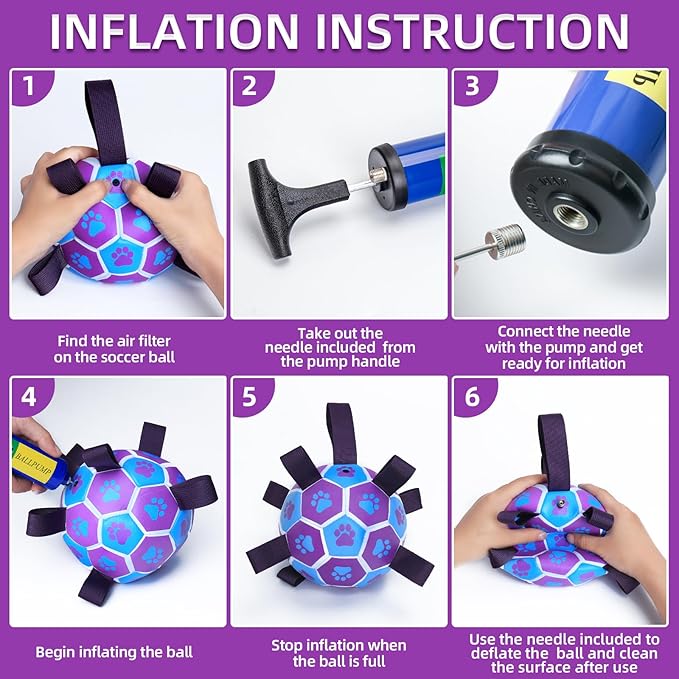 QDAN Dog Ropes Toys Soccer Ball with Straps, Puppy Birthday Gifts, Tug of Toy, Water Toy, Durable Balls for Dogs, Medium Small Breed, 6 Inch